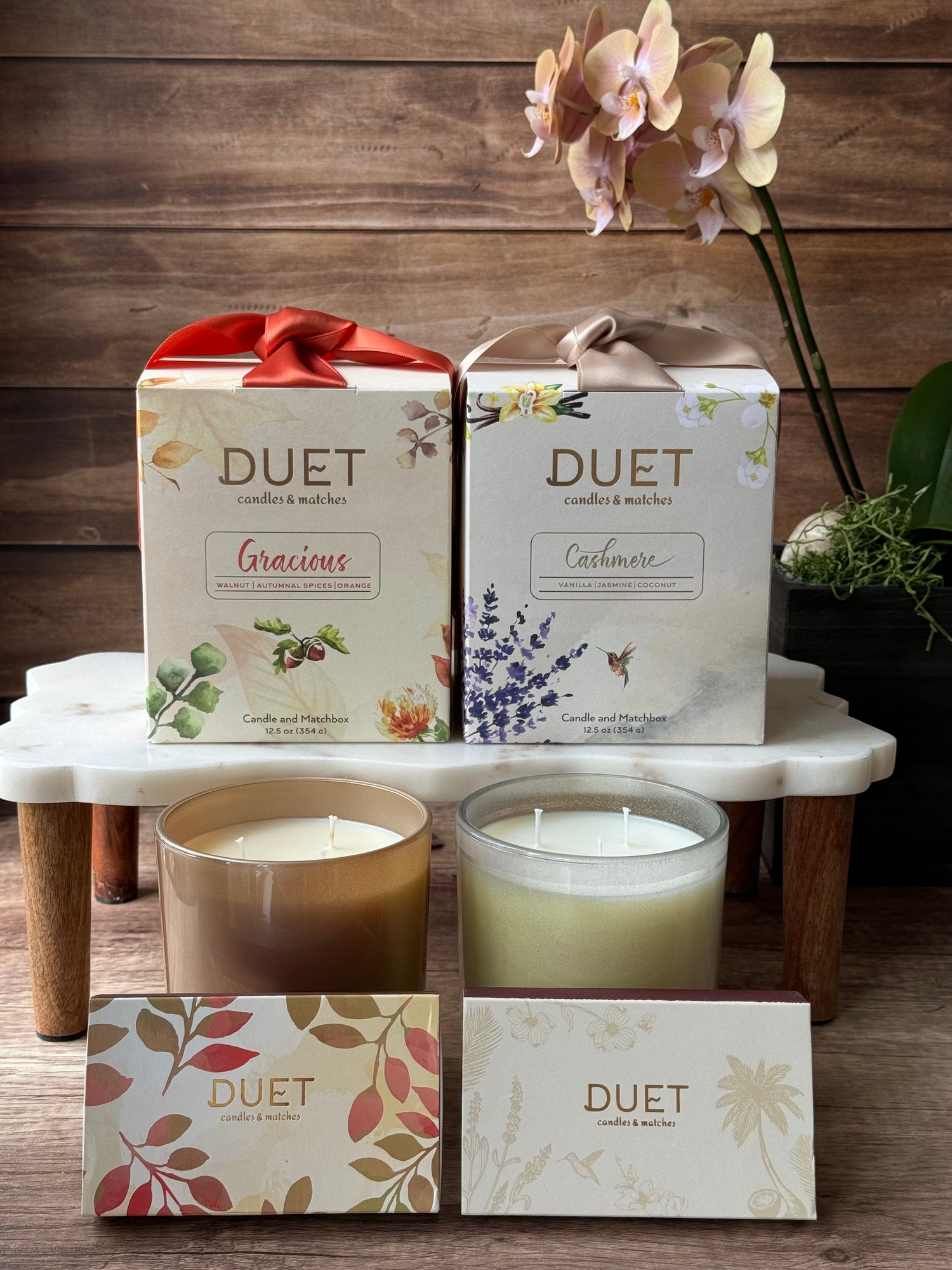 Duet pairs elevated fragrances with elegant match sets. Presenting a gift that has been mindfully produced and cleverly prepared conveys greater meaning.